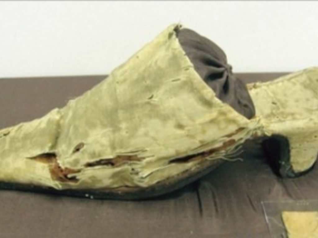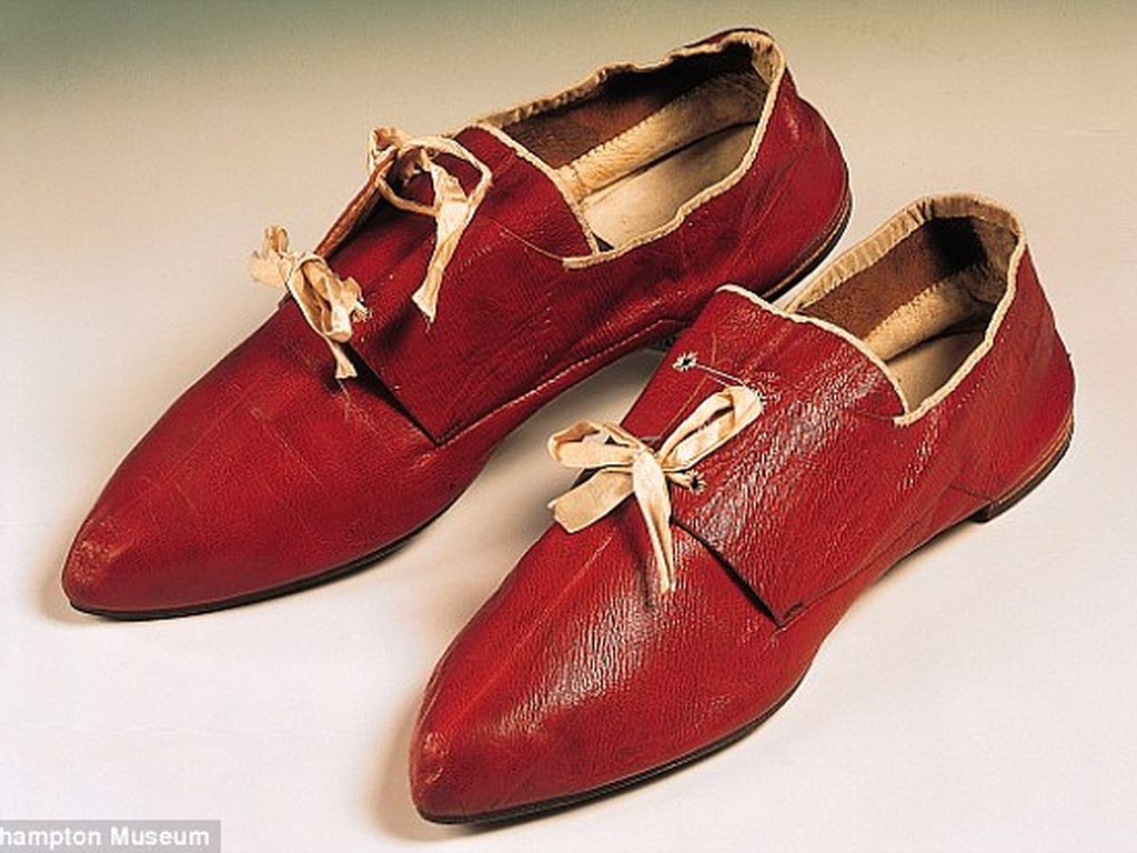 Other unusual pieces on show include a dashing pair of red leather men's shoes, a stunning silken carnival mask and illustrations detailing the newly popular pastimes of shopping and balls.