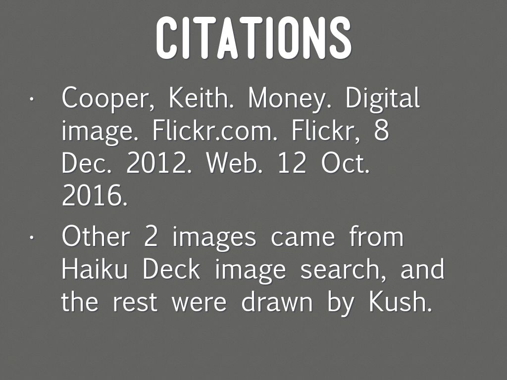 Other 2 images came from Haiku Deck image search, and the rest were drawn by Kush.