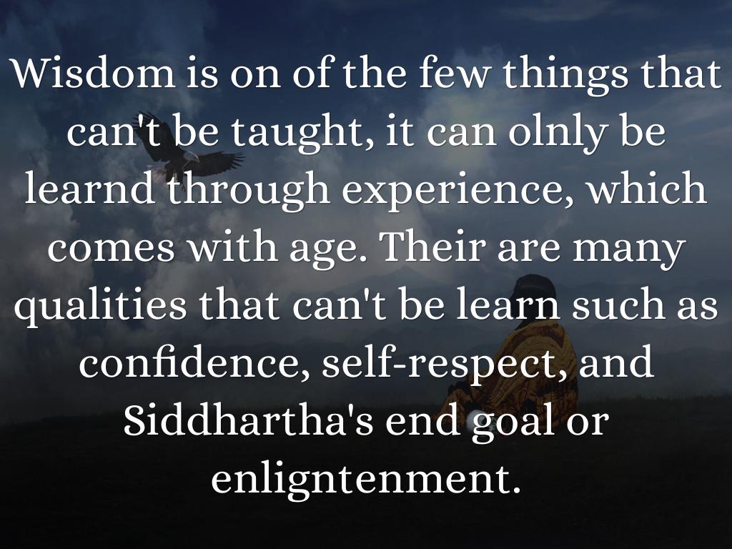 Wisdom is on of the few things that can't be taught, it can olnly be learnd through experience, which comes with age. Their are many qualities that can't be learn such as confidence, self-respect, and Siddhartha's end goal or enligntenment.