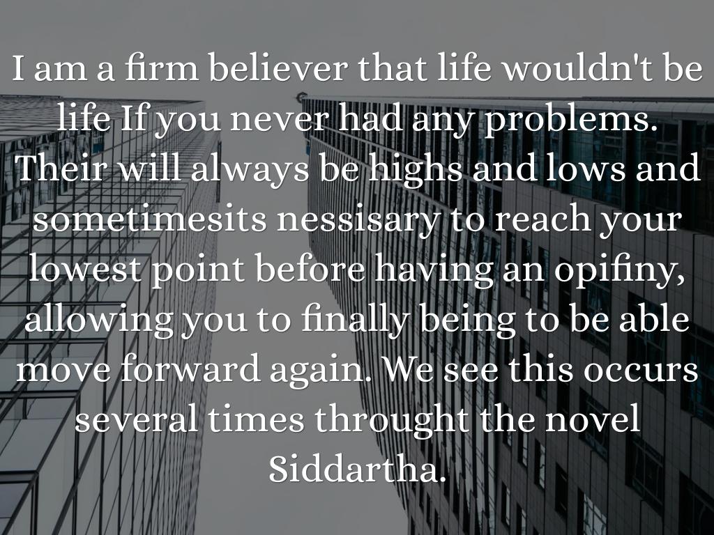 I am a firm believer that life wouldn't be life If you never had any problems. Their will always be highs and lows and sometimesits nessisary to reach your lowest point before having an opifiny, allowing you to finally being to be able move forward again. We see this occurs several times throught the novel Siddartha.