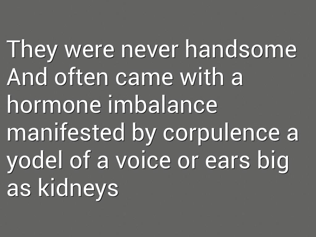 And often came with a hormone imbalance manifested by corpulence a yodel of a voice or ears big as kidneys