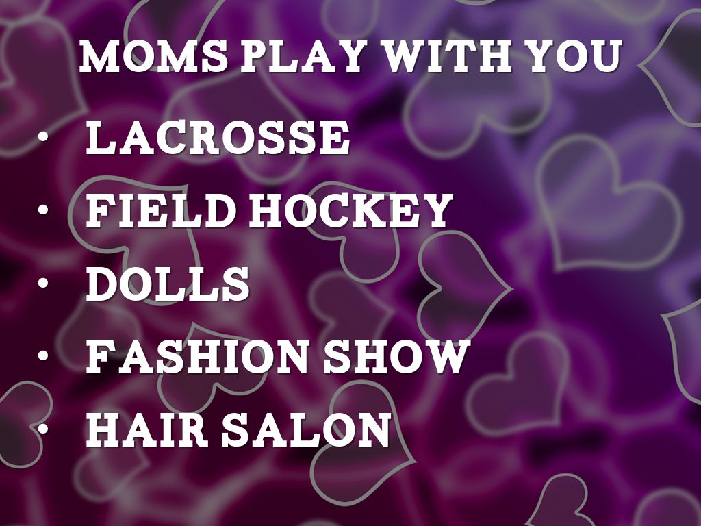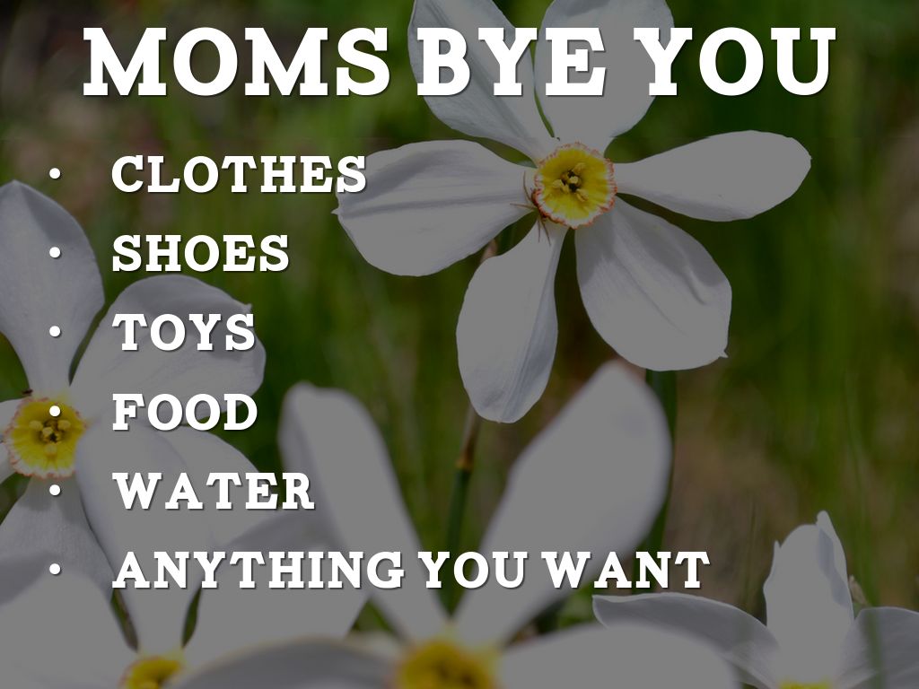 MOMS HELP YOU. MOMS BYE YOU STUFF MOMS PLAY WITH YOU