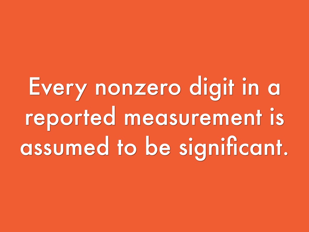 Every nonzero digit in a reported measurement is assumed to be significant.