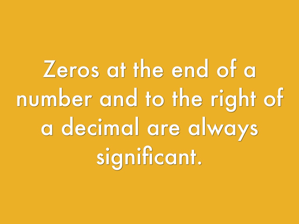 Zeros at the end of a number and to the right of a decimal are always significant.