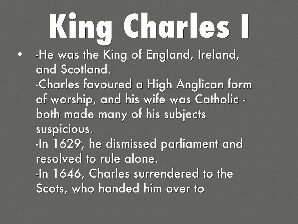 -Charles favoured a High Anglican form of worship, and his wife was Catholic - both made many of his subjects suspicious.