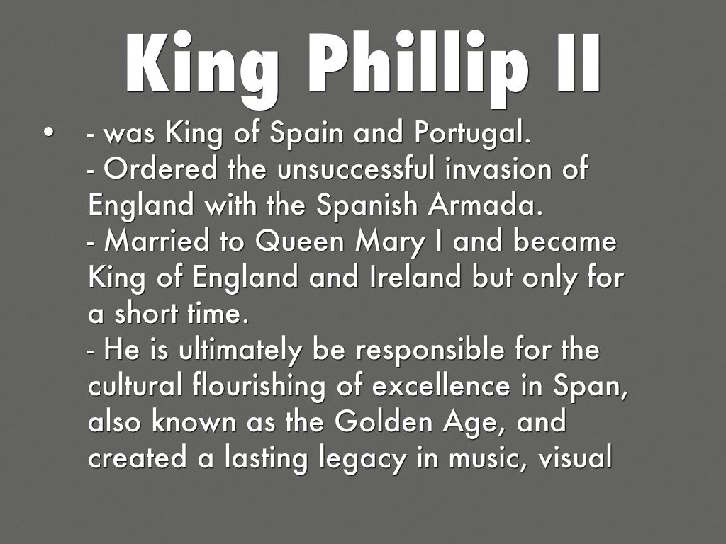 - He is ultimately be responsible for the cultural flourishing of excellence in Span, also known as the Golden Age, and created a lasting legacy in music, visual arts and literature.