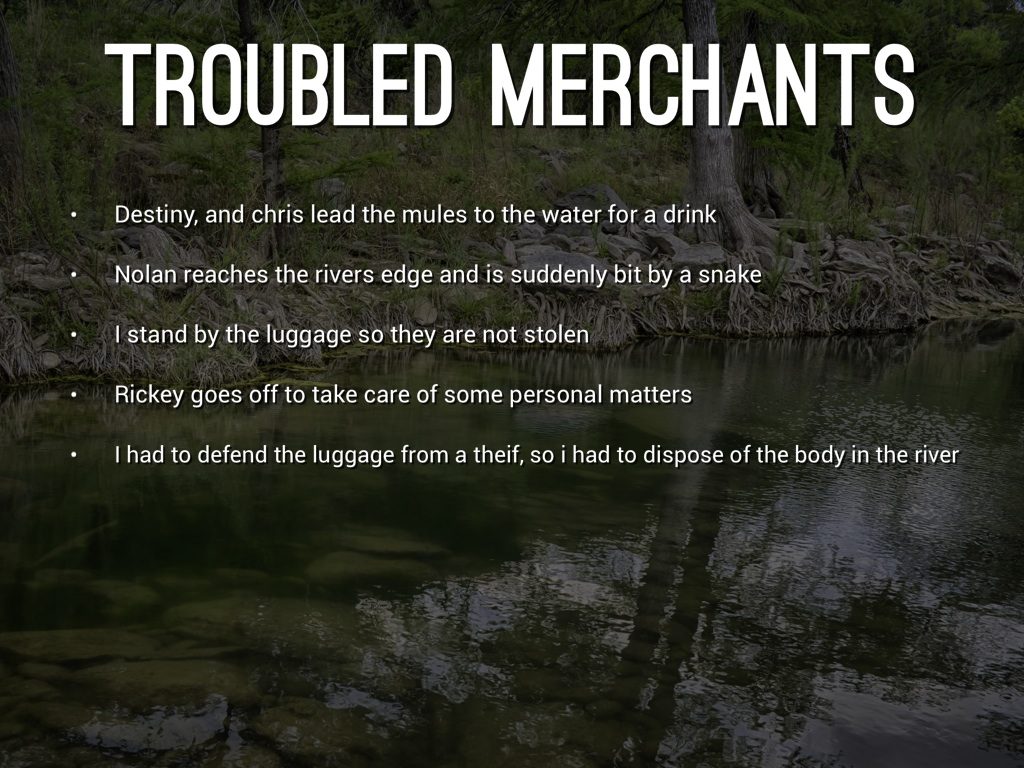I had to defend the luggage from a theif, so i had to dispose of the body in the river