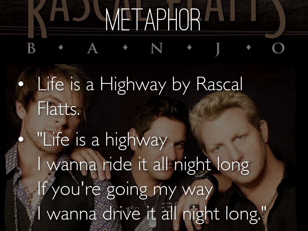 "Life is a highway I wanna ride it all night long If you're going my way I wanna drive it all night long."