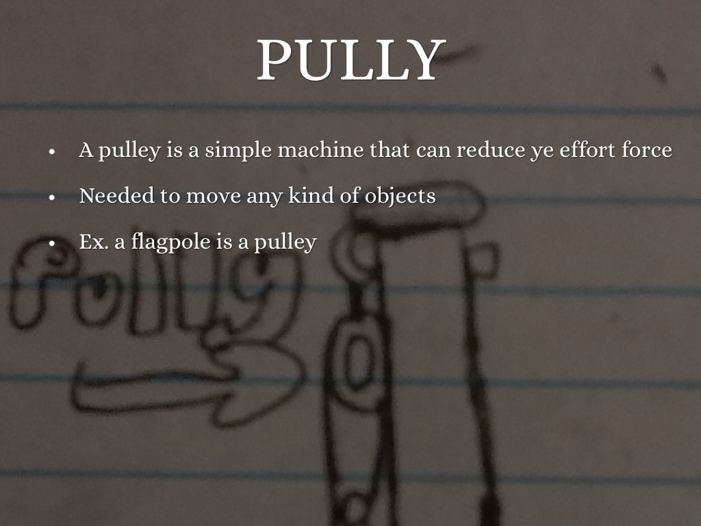 A pulley is a simple machine that can reduce ye effort force