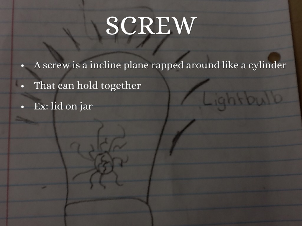 A screw is a incline plane rapped around like a cylinder