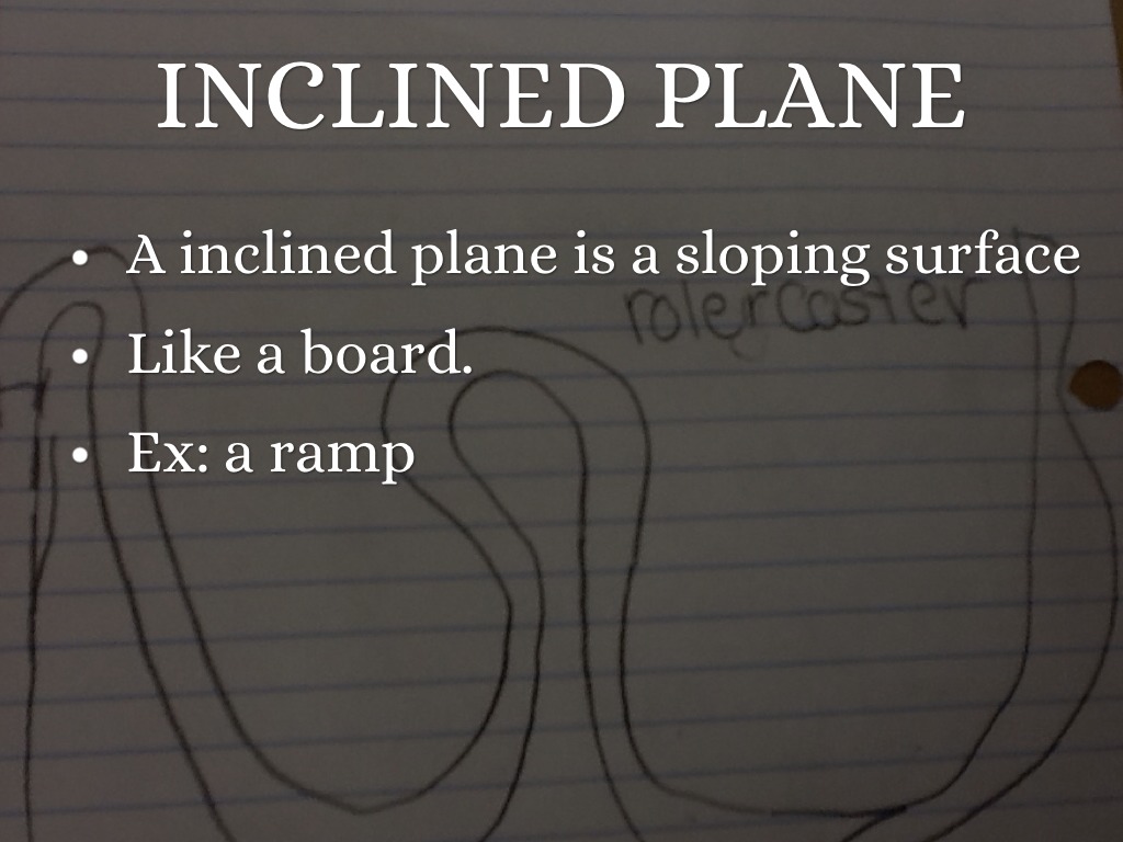 A inclined plane is a sloping surface
