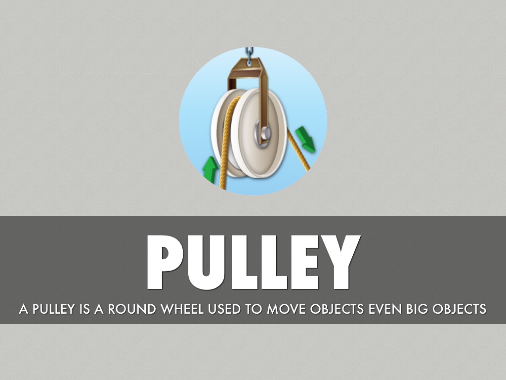 A PULLEY IS A ROUND WHEEL USED TO MOVE OBJECTS EVEN BIG OBJECTS