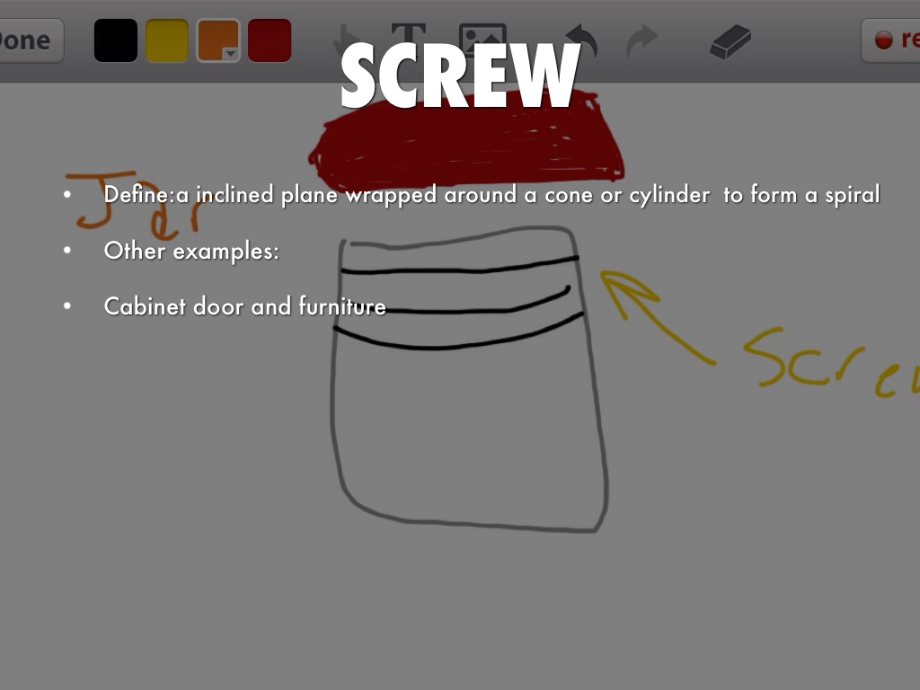 Define:a inclined plane wrapped around a cone or cylinder to form a spiral