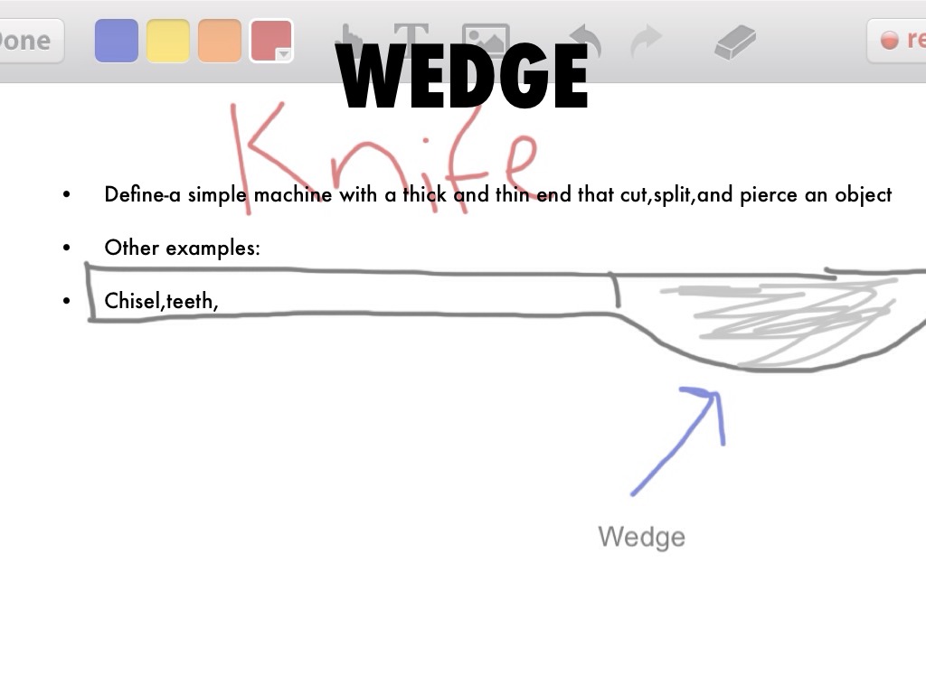 Define-a simple machine with a thick and thin end that cut,split,and pierce an object