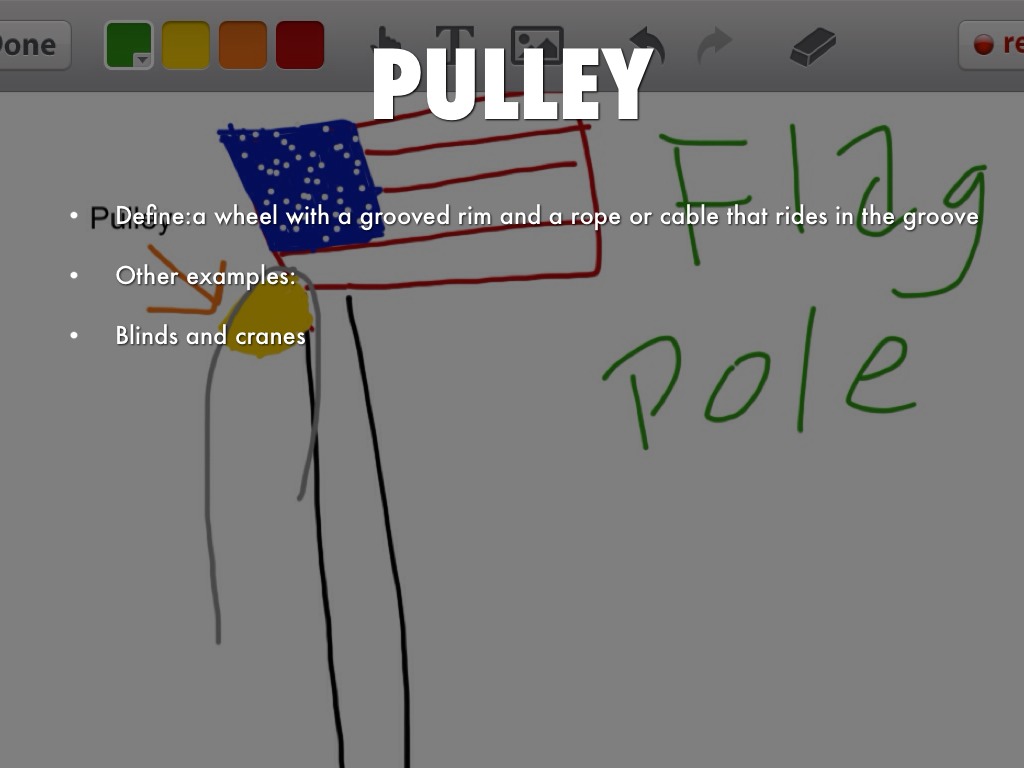 Define:a wheel with a grooved rim and a rope or cable that rides in the groove