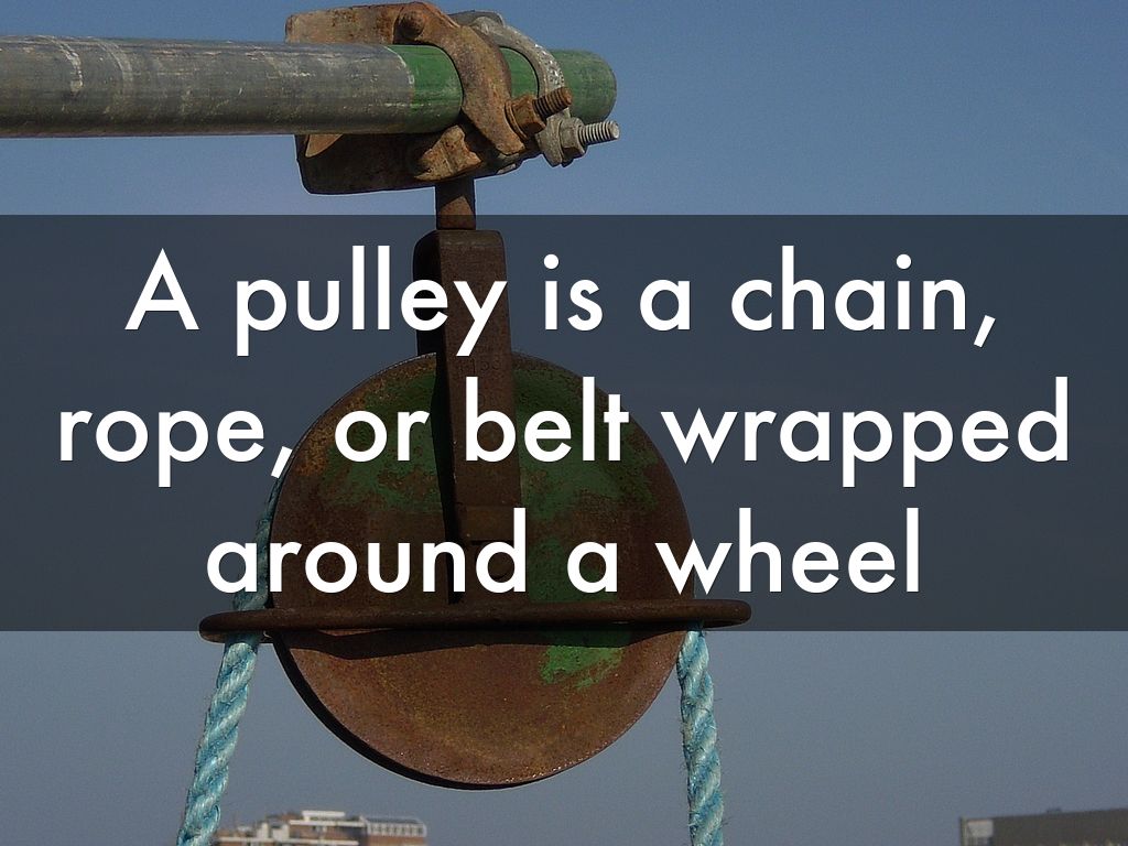 A pulley is a chain, rope, or belt wrapped around a wheel