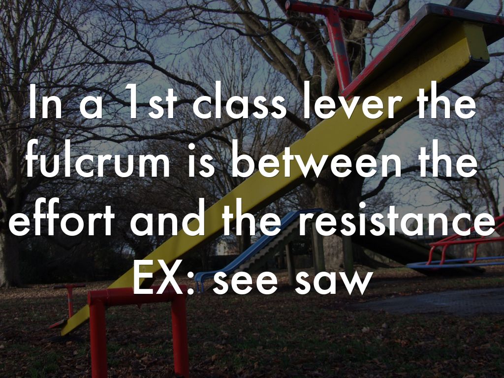 In a 1st class lever the fulcrum is between the effort and the resistance