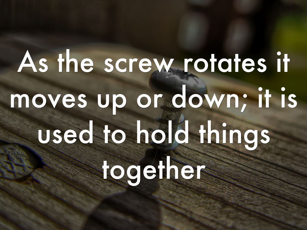 As the screw rotates it moves up or down; it is used to hold things together