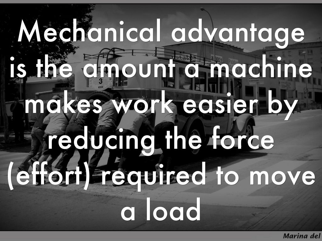Mechanical advantage is the amount a machine makes work easier by reducing the force (effort) required to move a load