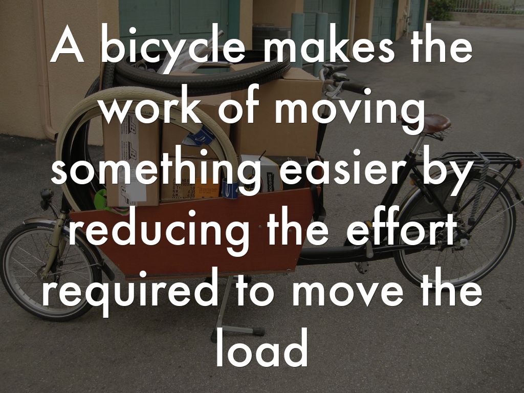 A bicycle makes the work of moving something easier by reducing the effort required to move the load