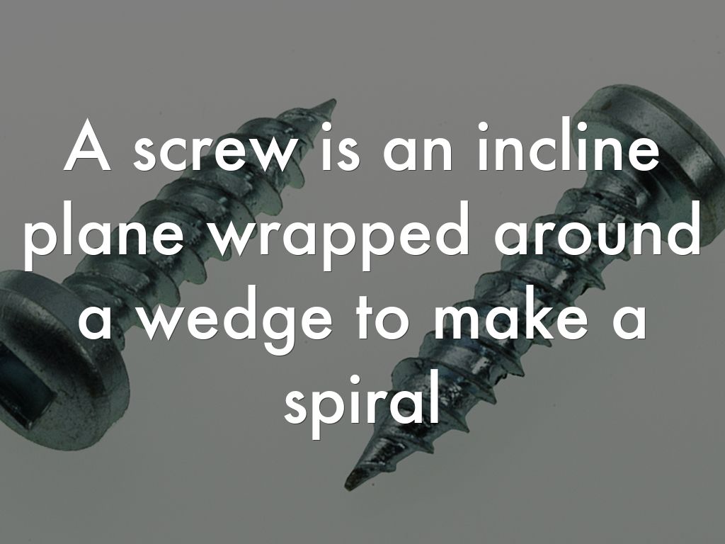 A screw is an incline plane wrapped around a wedge to make a spiral