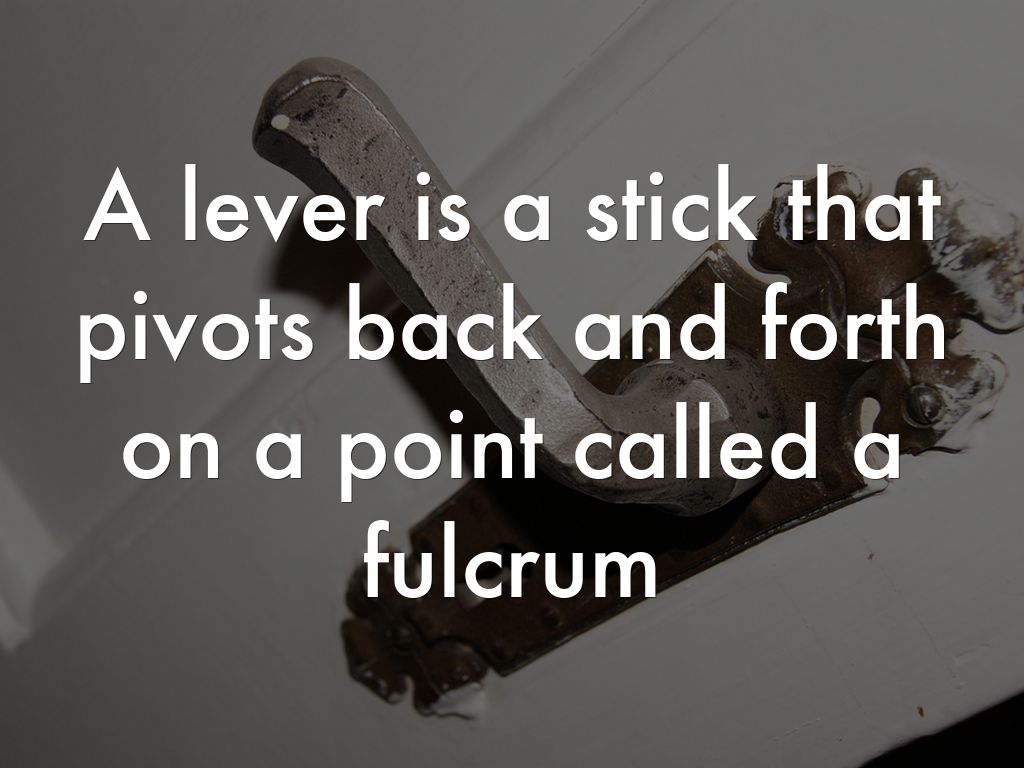 A lever is a stick that pivots back and forth on a point called a fulcrum