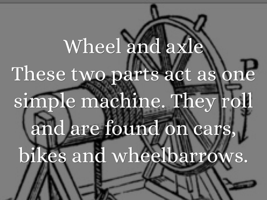 These two parts act as one simple machine. They roll and are found on cars, bikes and wheelbarrows.
