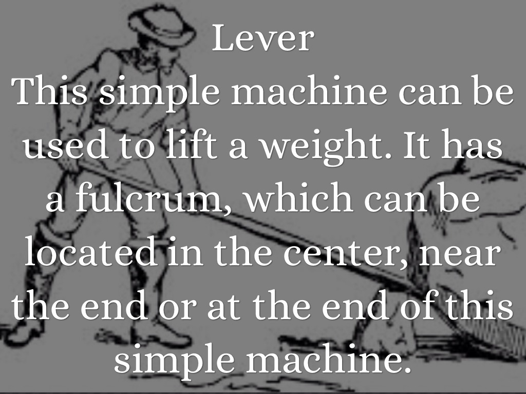This simple machine can be used to lift a weight. It has a fulcrum, which can be located in the center, near the end or at the end of this simple machine.