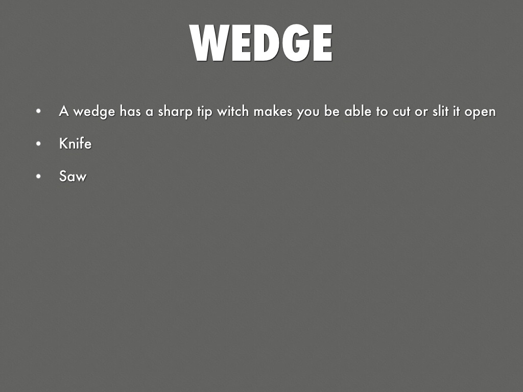 A wedge has a sharp tip witch makes you be able to cut or slit it open