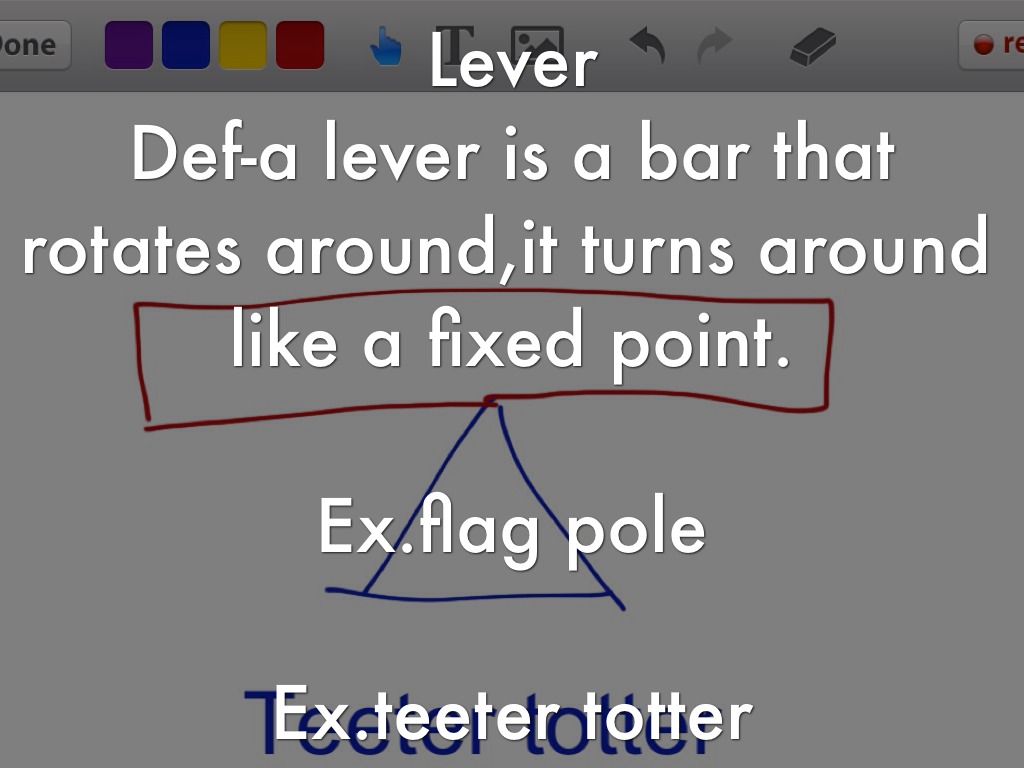 Def-a lever is a bar that rotates around,it turns around like a fixed point.