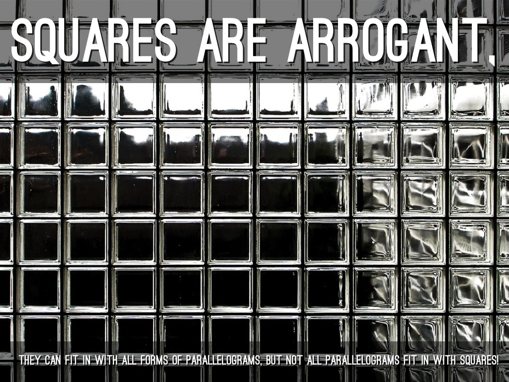 they can fit in with all forms of parallelograms, but not all parallelograms fit in with squares!