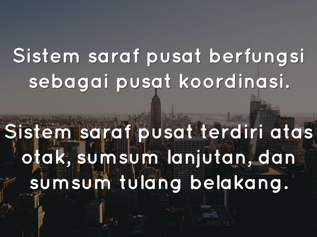Sistem saraf pusat terdiri atas otak, sumsum lanjutan, dan sumsum tulang belakang.