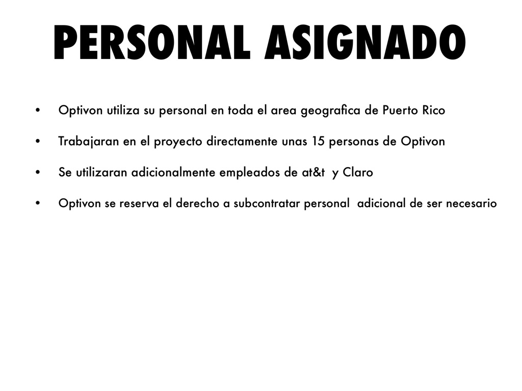 • Optivon utiliza su personal en toda el area geografica de Puerto Rico