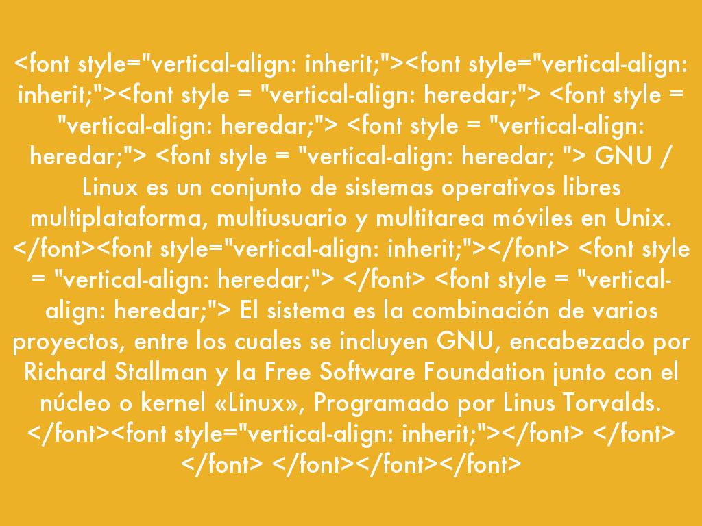 GNU / Linux es un conjunto de sistemas operativos libres multiplataforma, multiusuario y multitarea móviles en Unix. El sistema es la combinación de varios proyectos, entre los cuales se incluyen GNU, encabezado por Richard Stallman y la Free Software Foundation junto con el núcleo o kernel «Linux», Programado por Linus Torvalds.
