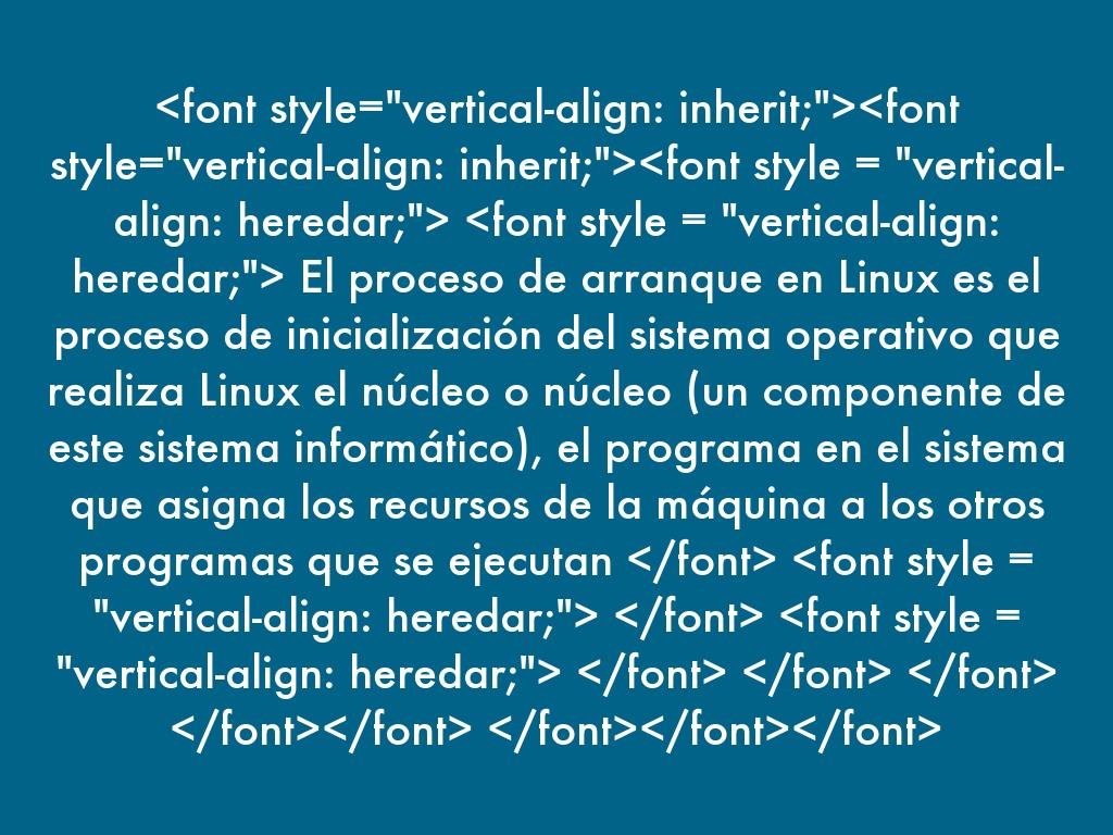El proceso de arranque en Linux es el proceso de inicialización del sistema operativo que realiza Linux el núcleo o núcleo (un componente de este sistema informático), el programa en el sistema que asigna los recursos de la máquina a los otros programas que se ejecutan