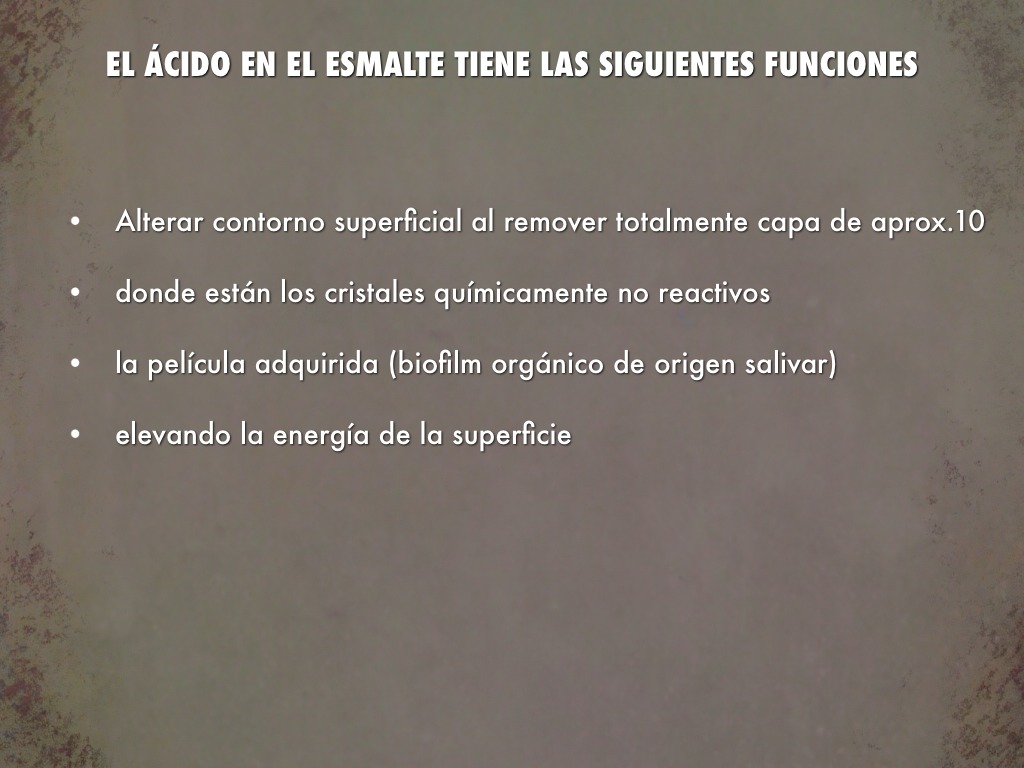 El ácido en el esmalte tiene las siguientes funciones