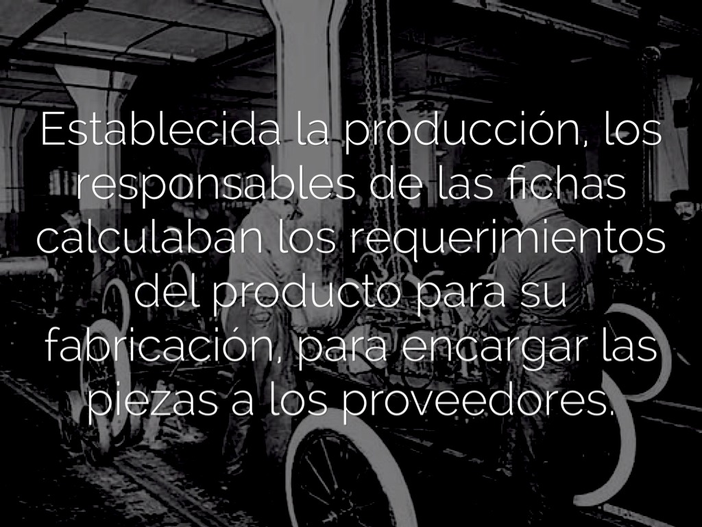 Establecida la producción, los responsables de las fichas CALCULABAN los REQUERIMIENTOS del producto para su FABRICACIÓN, para encargar las piezas a los proveedores.