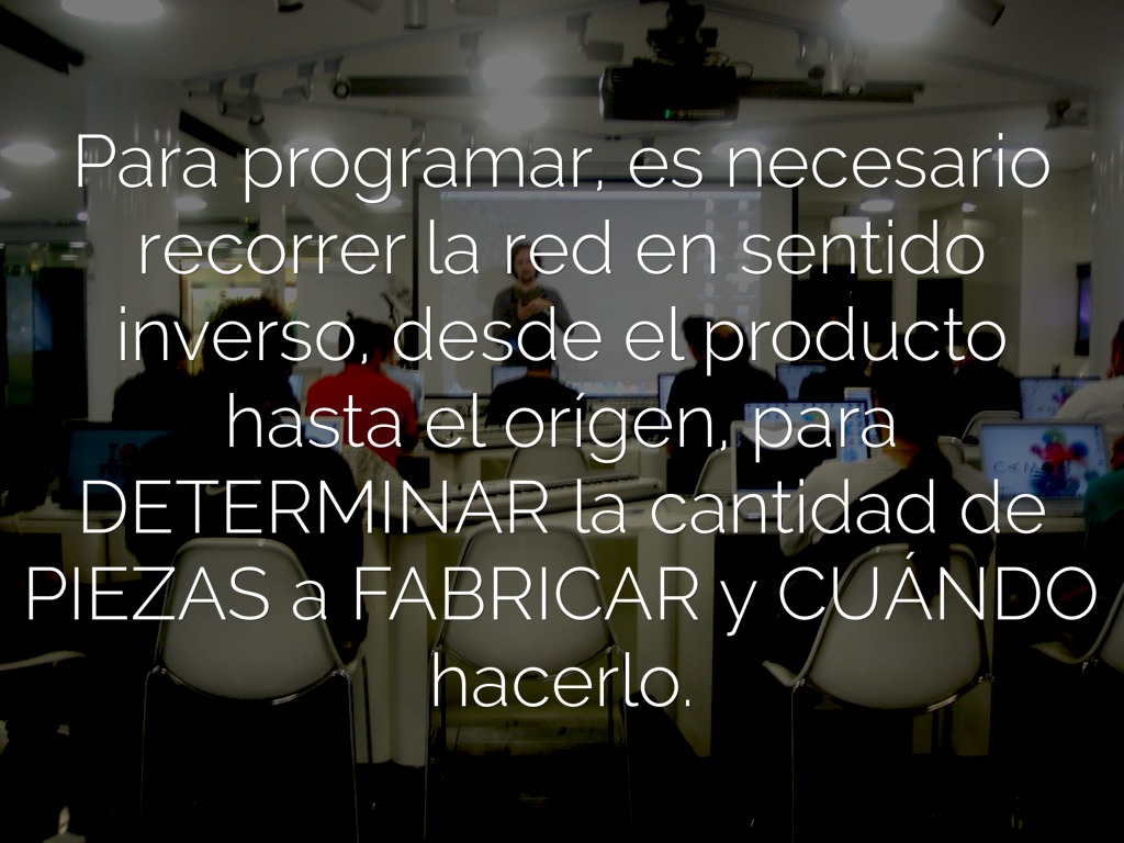 Para programar, es necesario recorrer la red en sentido inverso, desde el producto hasta el orígen, para DETERMINAR la cantidad de PIEZAS a FABRICAR y CUÁNDO hacerlo.