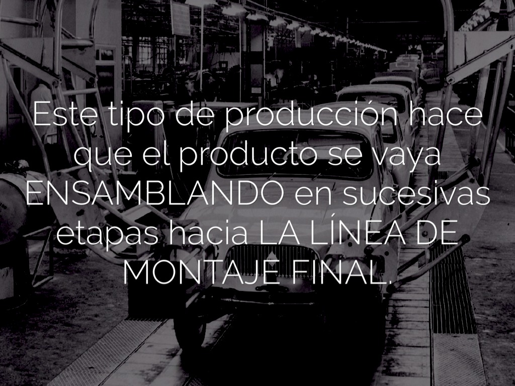 Este tipo de producción hace que el producto se vaya ENSAMBLANDO en sucesivas etapas hacia LA LÍNEA DE MONTAJE FINAL.
