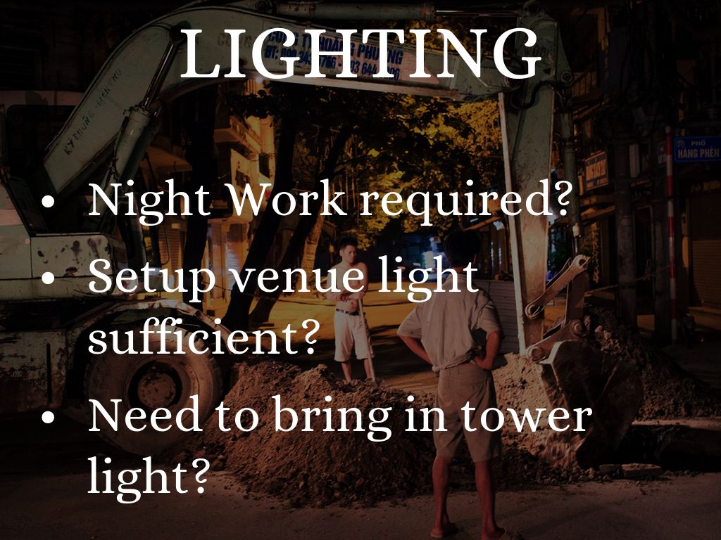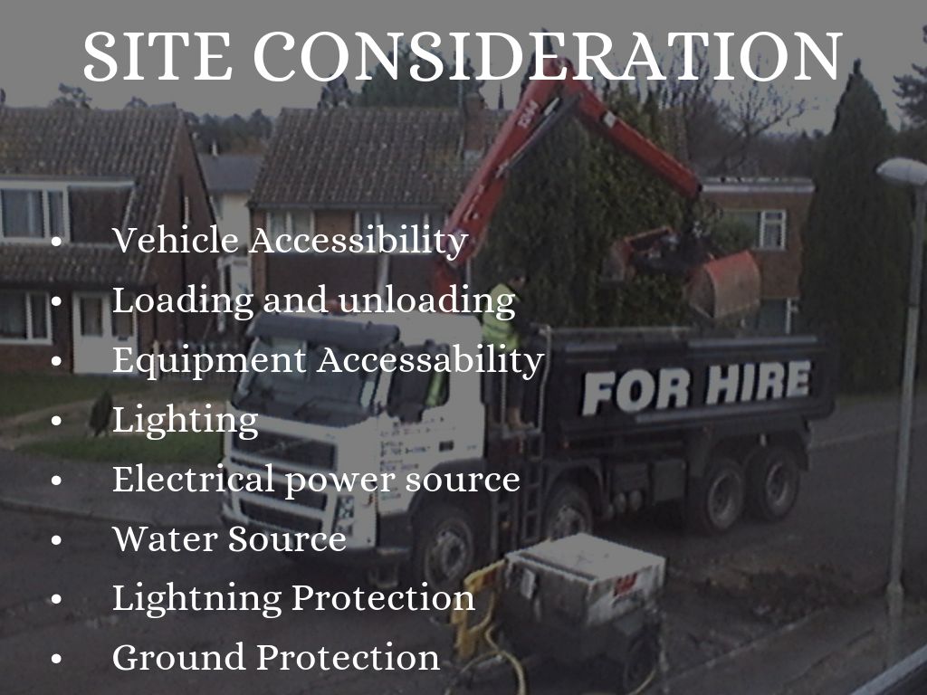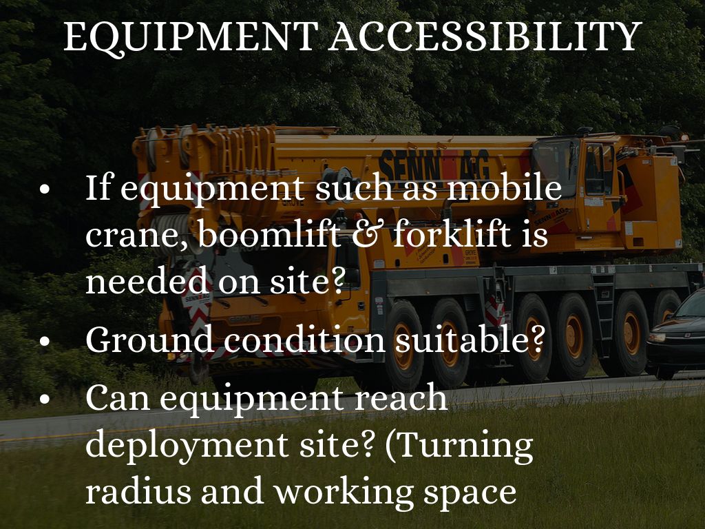 If equipment such as mobile crane, boomlift & forklift is needed on site?