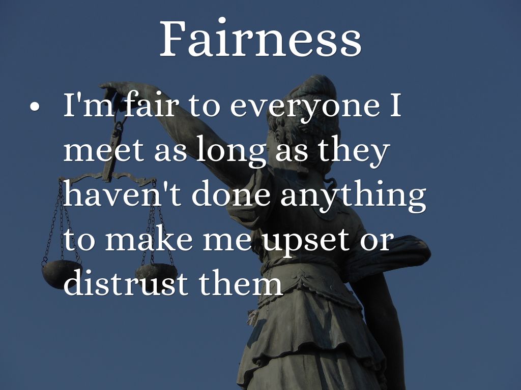 • I'm fair to everyone I meet as long as they haven't done anything to make me upset or distrust them
