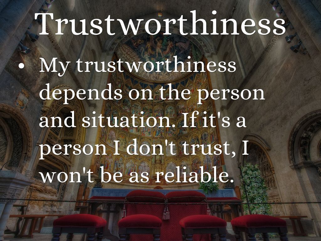 • My trustworthiness depends on the person and situation. If it's a person I don't trust, I won't be as reliable.