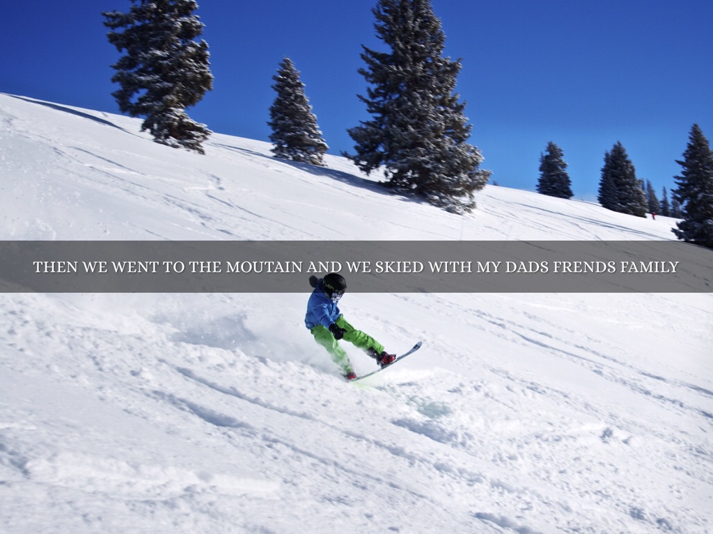 THEN WE WENT TO THE MOUTAIN AND WE SKIED WITH MY DADS FRENDS FAMILY