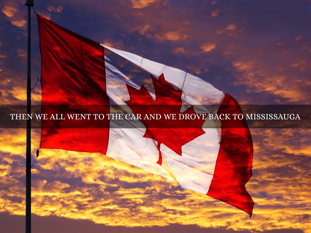 THEN WE ALL WENT TO THE CAR AND WE DROVE BACK TO MISSISSAUGA