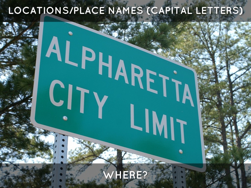 LOCATIONS/PLACE NAMES (CAPITAL LETTERS)
