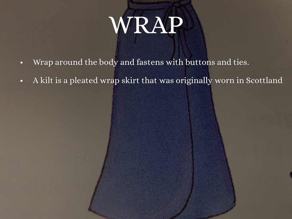 A kilt is a pleated wrap skirt that was originally worn in Scottland
