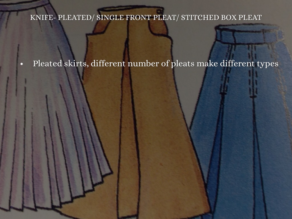 KNIFE- PLEATED/ SINGLE FRONT PLEAT/ STITCHED BOX PLEAT