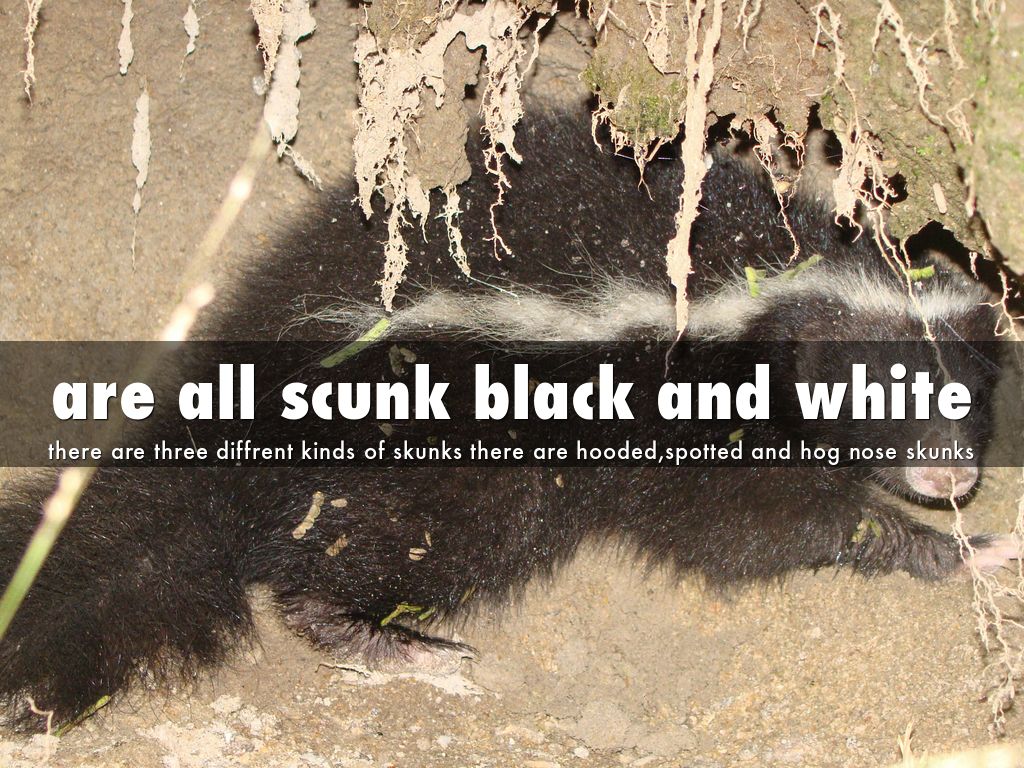 there are three diffrent kinds of skunks there are hooded,spotted and hog nose skunks