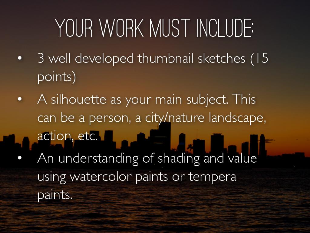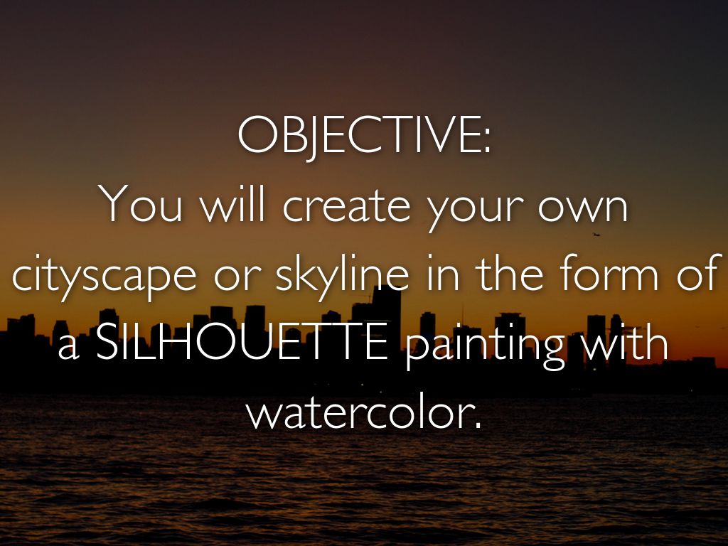 You will create your own cityscape or skyline in the form of a SILHOUETTE painting with watercolor.
