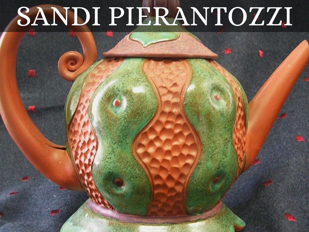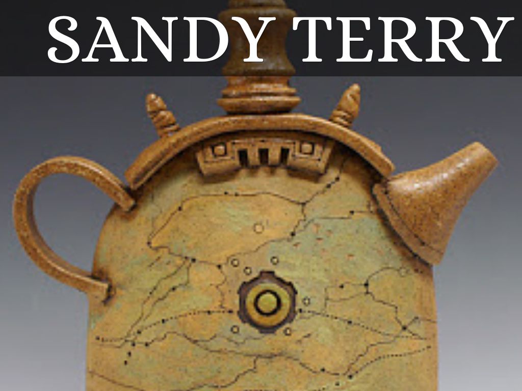 I like this tea pot by Sandy Terry. The pot has is abstract but also has a cool look to it because of the cooler colors. The way the colors drip into each other I think makes it stand out. Sandy used slabs to attach the top of the pot and the beaker where the tea comes out of as well as the handle.